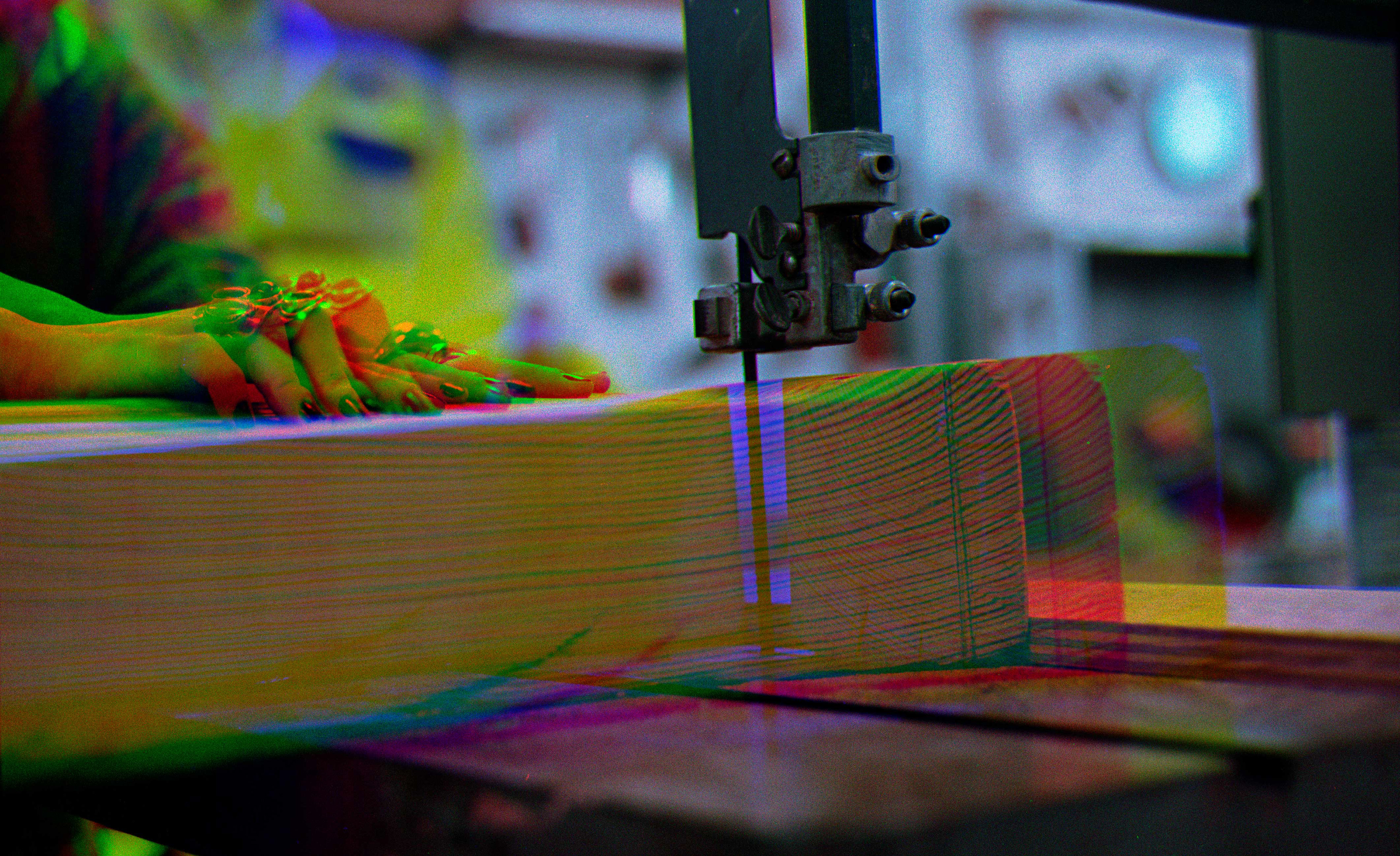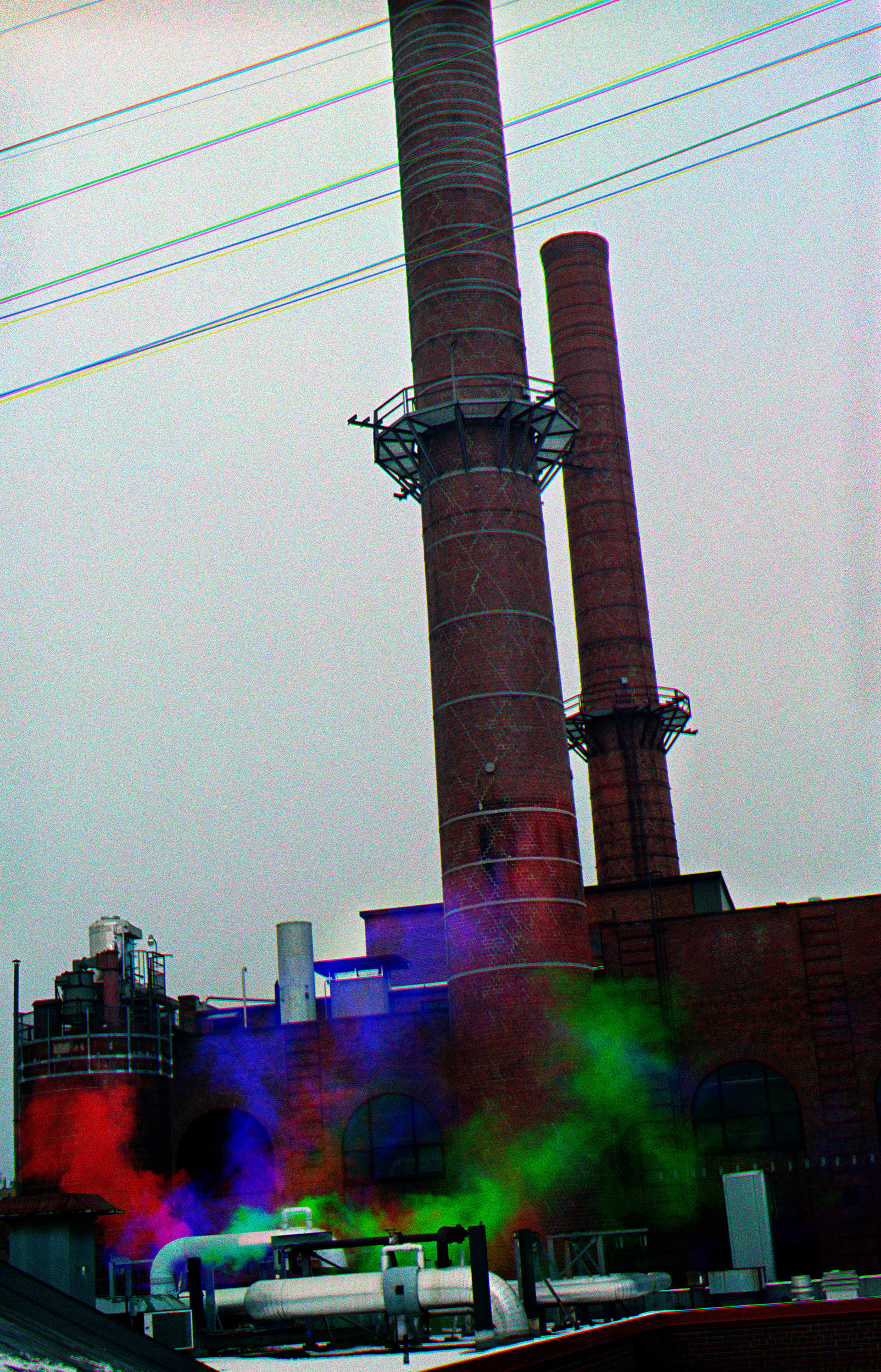 In my project Mining Energy, I use the tricolor separation process: combining three filtered black-and-white photographs to create a single color image. Anything that moves between the three exposures turns into red, green, or blue traces. I apply this technique to photograph power plants and energy consumption. Through layered images, I aim to make energy in everyday actions visible and its toxicity ignored, and our responsibilities to the future generation.